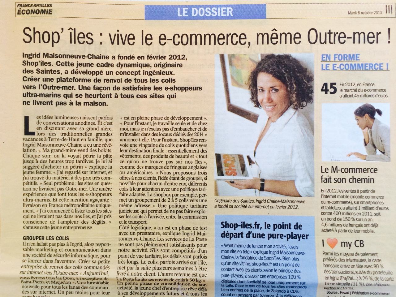"L'entrepreneure Ingrid Maisonneuve-Chaine a eu la brillante idée de créer Shop îles (entreprise de réexpédition de colis de la France aux DOM-TOM). Elle nous raconte son parcours de créateur."